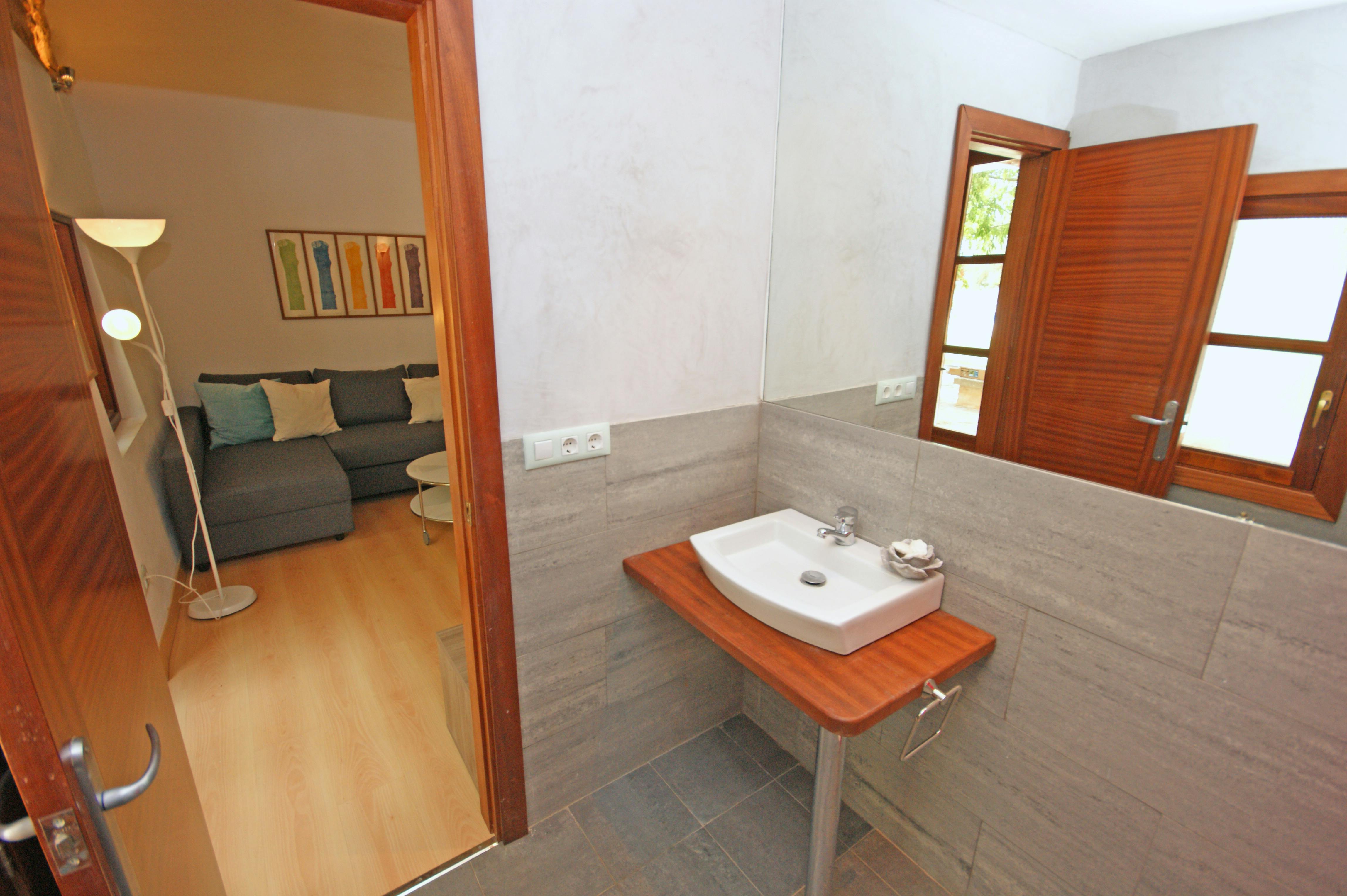 Tenemos cuatro Suites en Es Rafal Nou, cada una de aproximadamente 32 m2. Las cuatro cuentan con un dormitorio doble, un baño con ducha, una sala de estar con TV satélite, una pequeña cocina y una terraza privada de aproximadamente 20 m2.