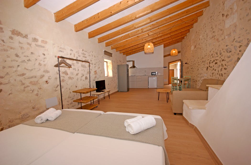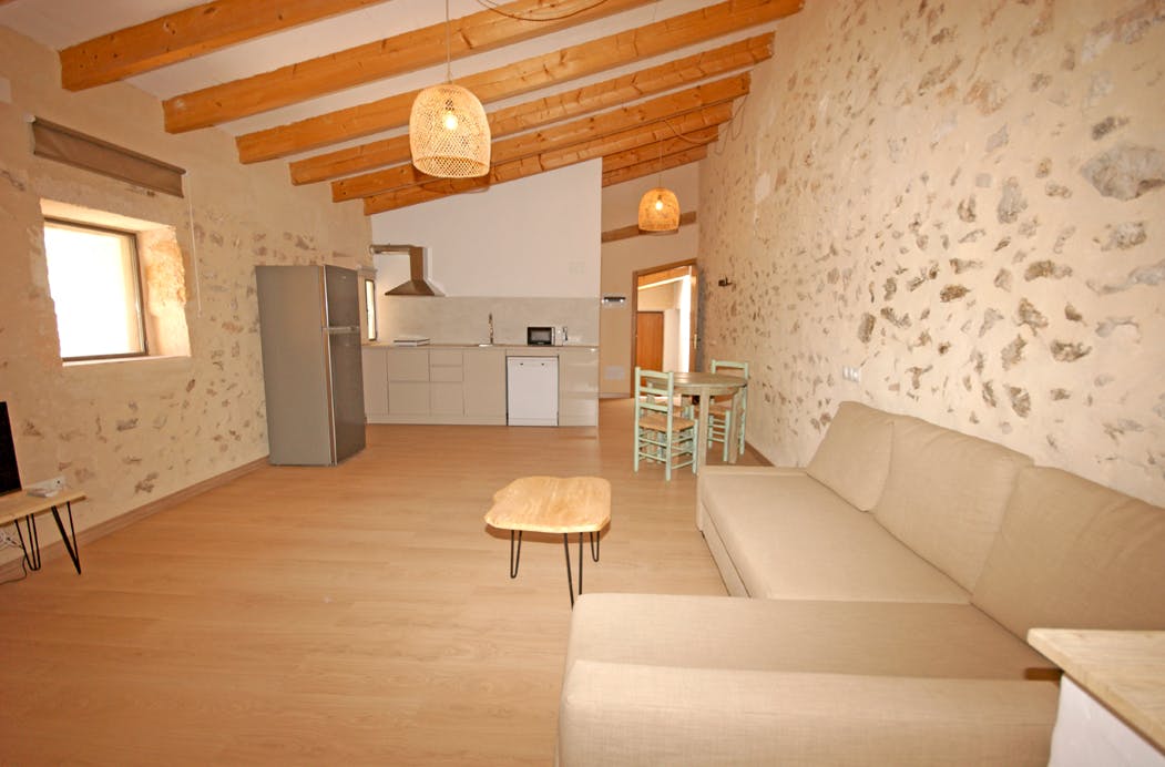 Flat of approximately 50 m2, located on the first floor. It has a sleeping area with 2 single beds of 90x200, living-dining area, fully equipped kitchen and 1 bathroom with shower. It also has a private terrace on the ground floor of approximately 30 m2 with barbecue.